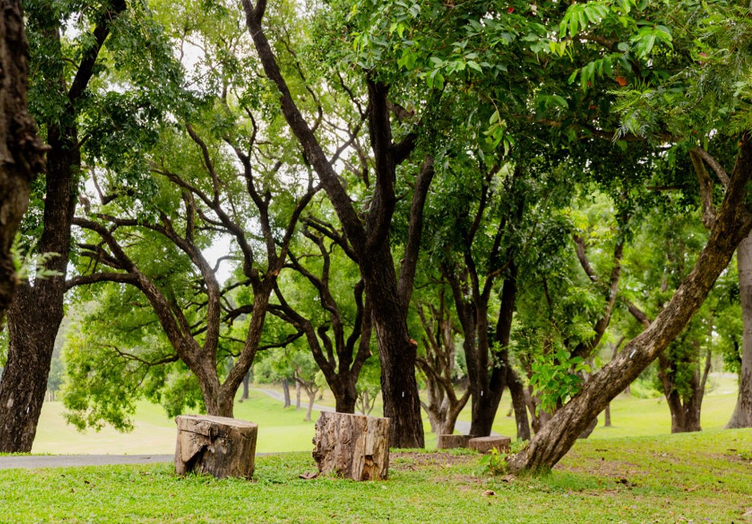 公園處補充,園內同時保存2,658株樹木,包括七里香、大葉桃花心木、榕樹與樟樹等,並逐一建立健康檔案。設施設計強調自然友善與循環利用,例如將倒木再製為原木座椅,散布於園區各處,營造出輕鬆自在的休憩氛圍。果嶺公園的啟用,不僅展現土地再生與公共性的實踐,也呼應「30×30全球生物多樣性目標」。作為亞洲首座簽署《柏林城市自然公約》的城市,將持續落實永續承諾,並與市民攜手守護這片新生的公共綠地。