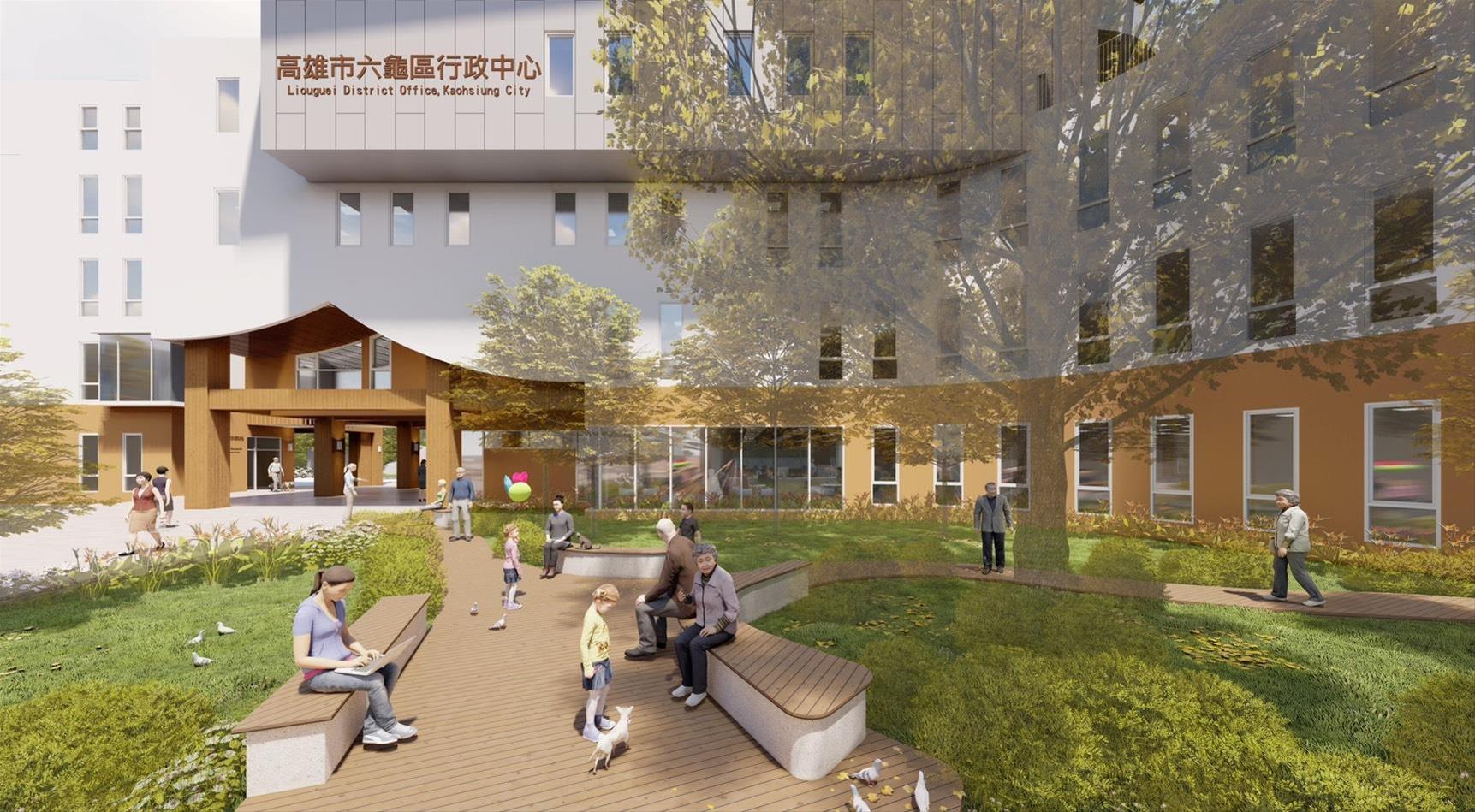 工務局局長楊欽富指出,六龜行政中心昔為原、漢交界重鎮,為洪稇源、天滿宮等人文地景所在地。整體建築設計融入歷史氛圍,營造出與自然山林相融合的辦公空間,不僅便利洽公,亦彰顯綠建築特色,重視地方歷史場景。建築本身與山景稜線相呼應,採透明採光設計,展現與市區行政中心截然不同的思維;並透過天滿宮軸線、階梯意象,串聯池田屋、洪稇源及天滿宮等歷史元素,營造完整故事性,深化地方文化價值。