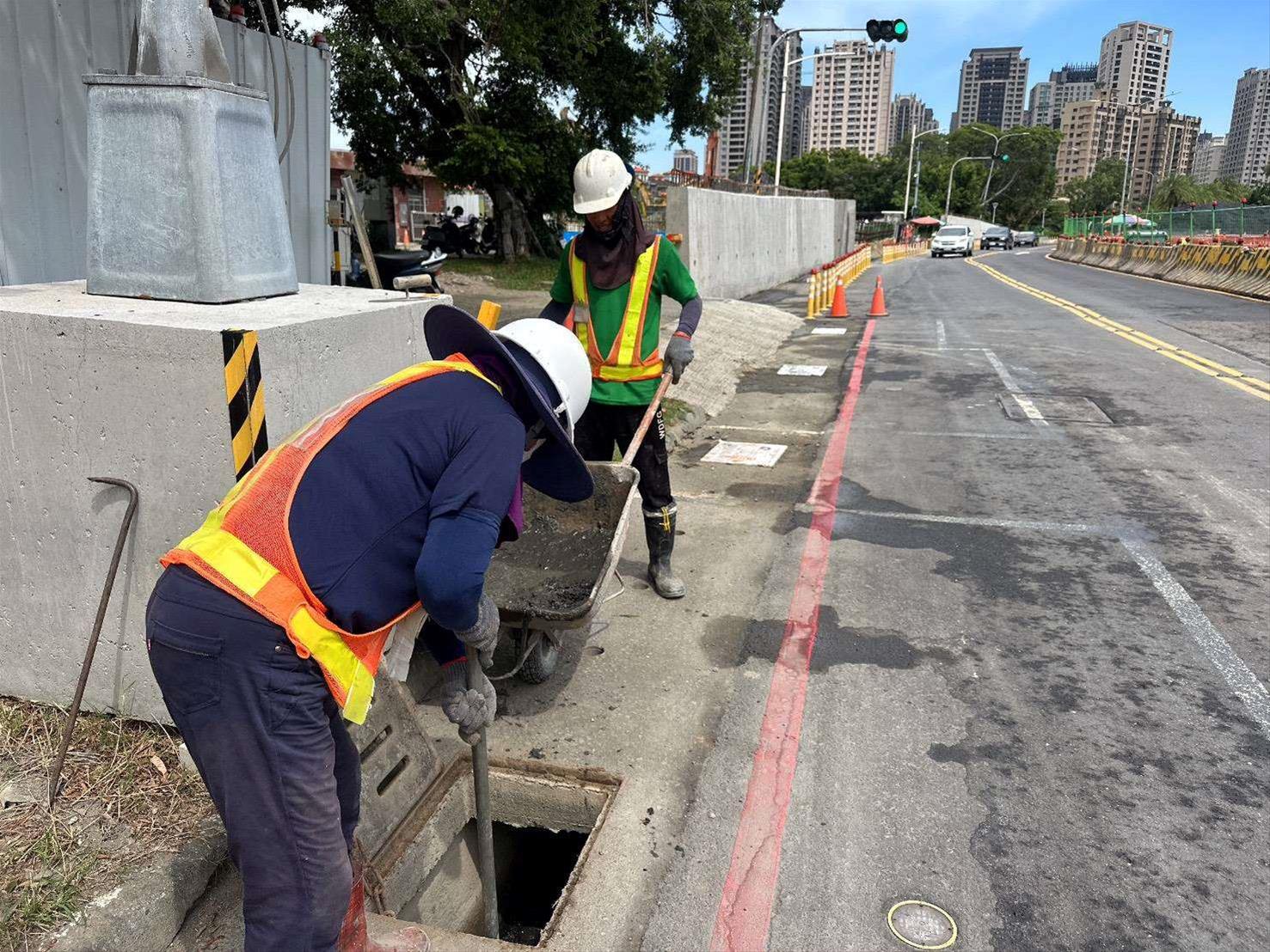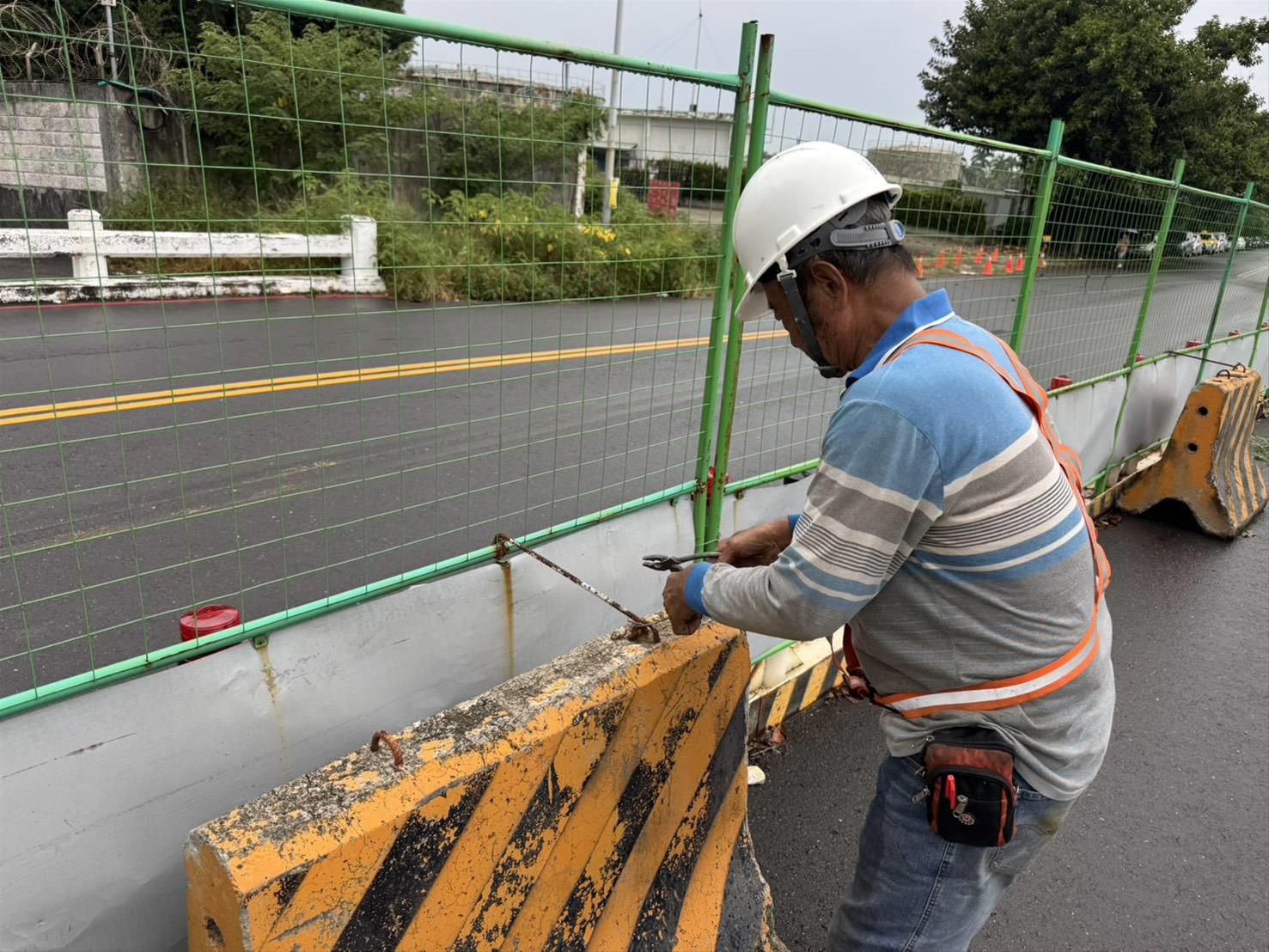 在道路與橋梁工地方面,已加強施工便道與交通維持設施,確保引導標誌、護欄不因強風鬆脫,並全面檢查臨時鋼構與施工平台固定狀況,避免受風雨影響而傾倒。另針對施工便橋與周邊排水系統完成清疏,並設置監測人員於颱風期間持續巡查,即時通報狀況。