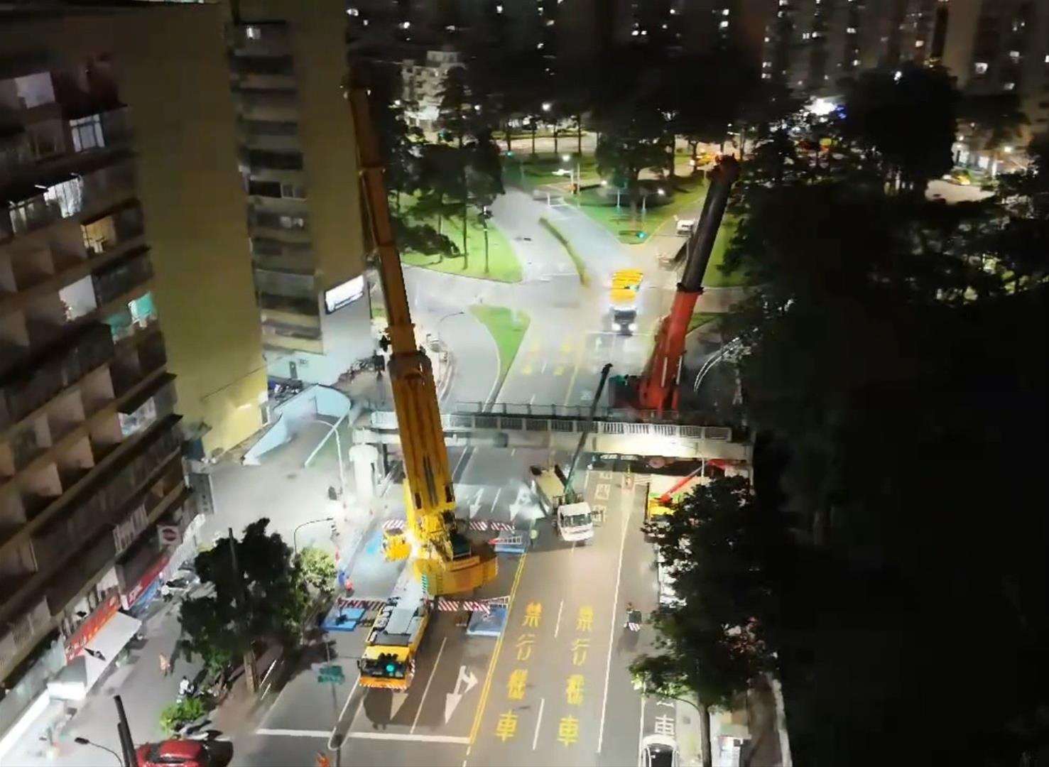 為加速工程進程,天橋拆除作業以鑽石鏈鋸切割後移地打除,可降低交通衝擊及減小施工噪音,同時以縮時攝影完整紀錄拆除過程,橋上無數次的守望沉潛至地平終歸寧靜,拆解舊城足跡的經典回憶化為天際的蔚藍空靈,也讓街道空間重生為串聯城市記憶與未來生活的溫柔場域。