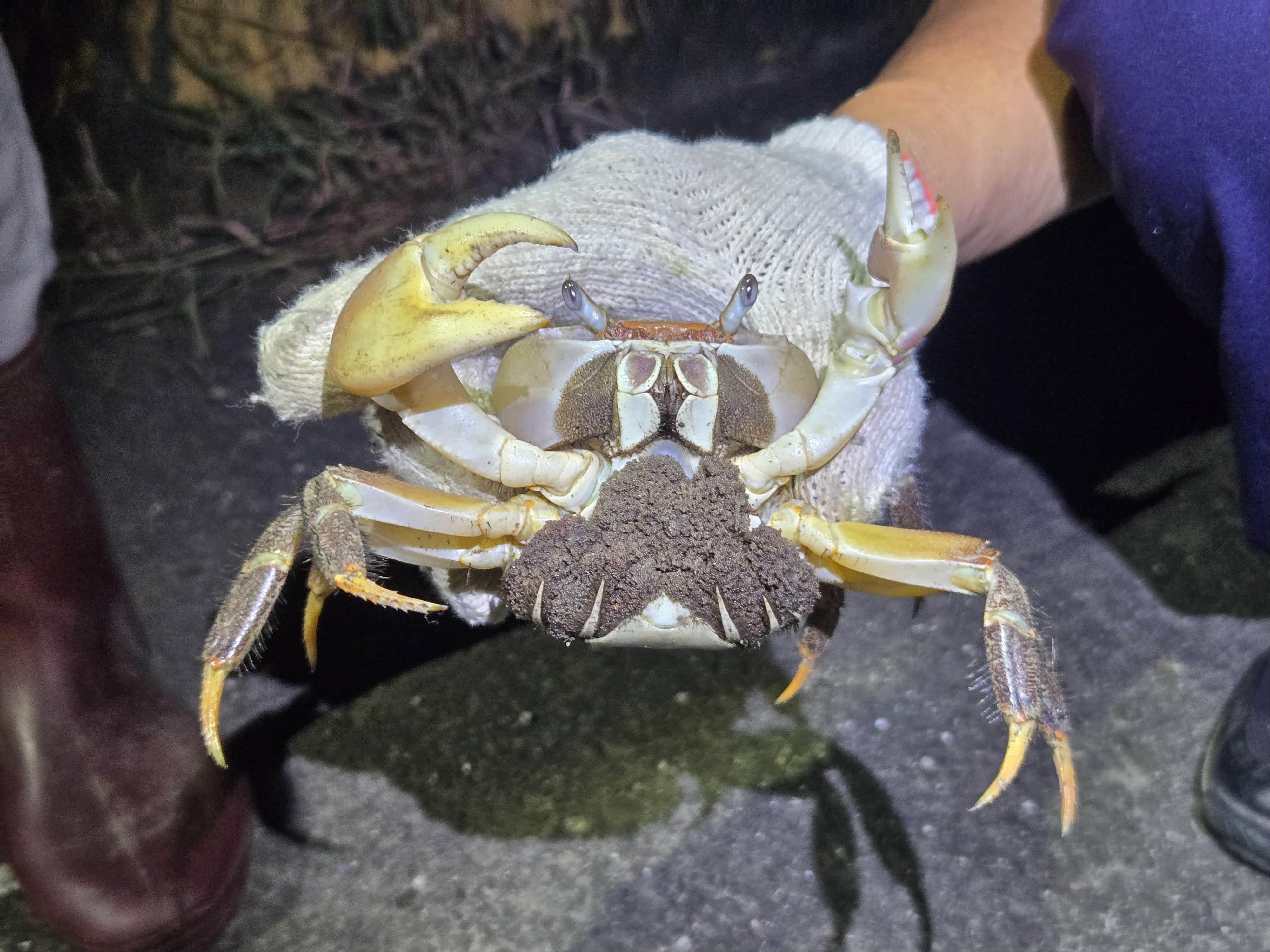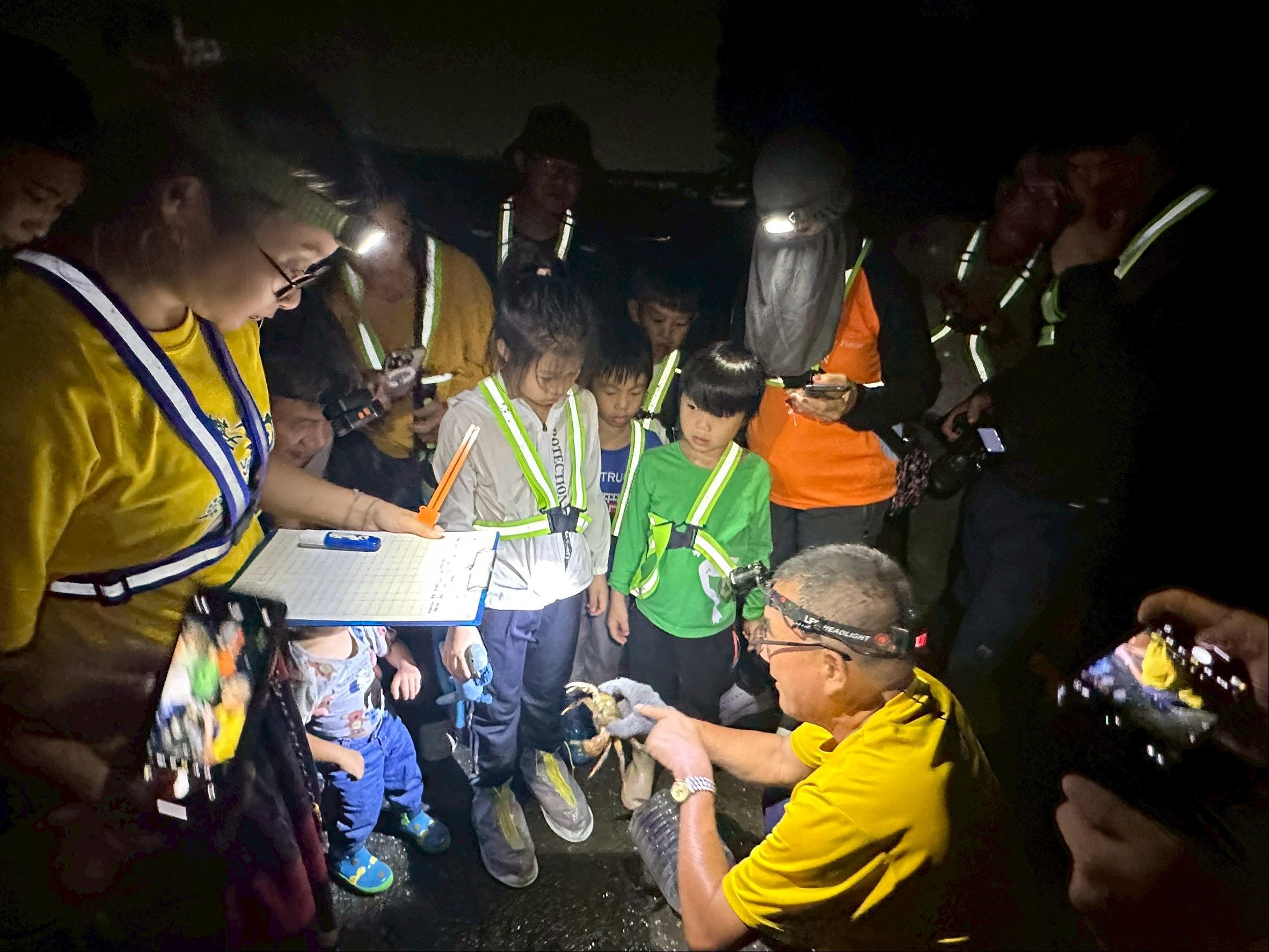 白天天氣陰涼或雨後,陸蟹會在巢穴附近活動,是民眾自行觀察的好時機;但由於夜晚濕地環境無照明,且燈光會干擾陸蟹正常活動,出於生態保育與安全考量,目前並不建議民眾自行夜間進入濕地。濕盟會在合適的夜間舉辦教育活動,帶領民眾在安全的環境中體驗觀察,並參與公民科學調查,藉此提升大眾對生態保護的認識與參與感,成為守護濕地生物多樣性的重要力量。