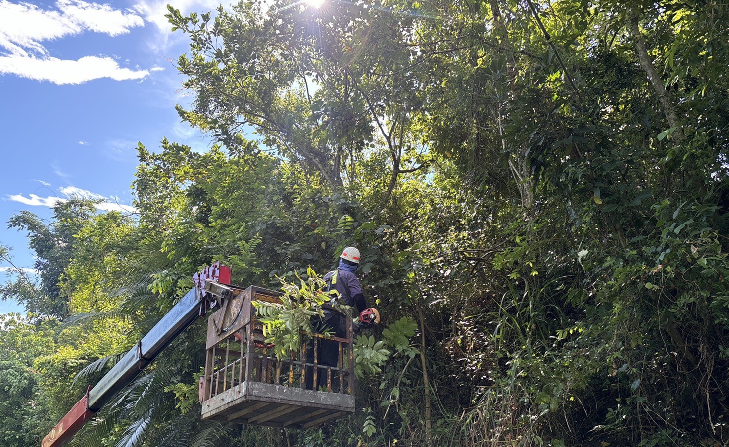 公園處說明,本處持續加強樹木支架的巡檢固定及路、園燈檢修,並持續進行樹木修剪作業,施工期間會進行現場交通管制,請民眾配合施作人員指揮,暫勿停放車輛,請往來民眾配合減速或提前改道,以保障安全及行車順暢。颱風過後,若有路樹傾倒,公園處將立即啟動復原機制,以最快速度恢復市容景觀。